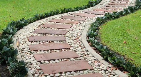 Wie lege ich einen Gartenweg mit Rindenmulch und Steinen an?