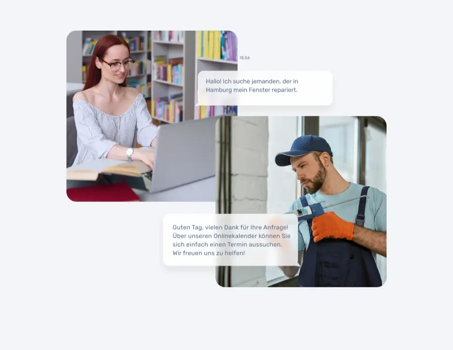 Kunden können Dir Serviceanfragen schicken und mit unserem Videochat-Feature kannst Du Dich direkt und online mit ihnen verbinden, um die Abwicklung des Auftrags mit ihnen zu besprechen.