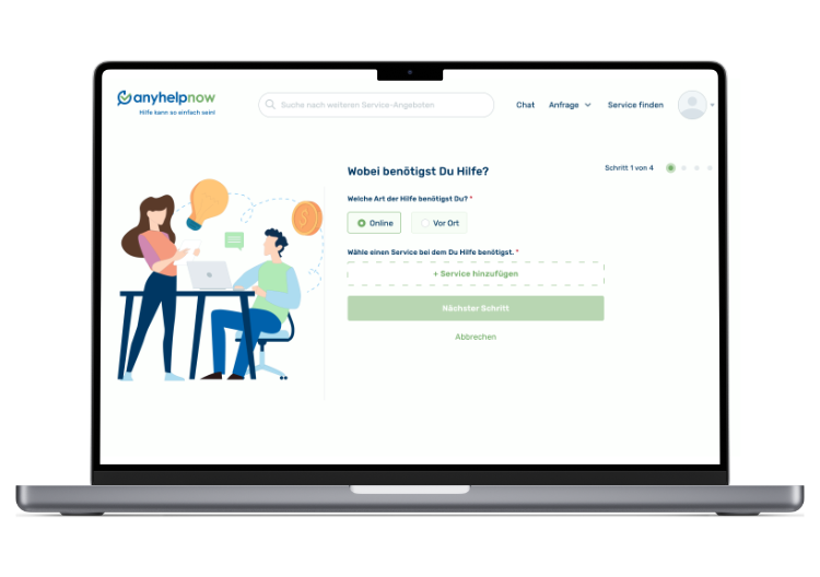 In einer digitalen Welt ist der persönliche Kontakt entscheidend. Bei uns steht die Vernetzung zwischen Dienstleistern und Kunden im Mittelpunkt. Hier trifft Deine Expertise auf die individuellen Bedürfnisse der Kunden. anyhelpnow ist Dein digitaler Arm, der den Bedarf Deiner Kunden mit Deinem Angebot verbindet.